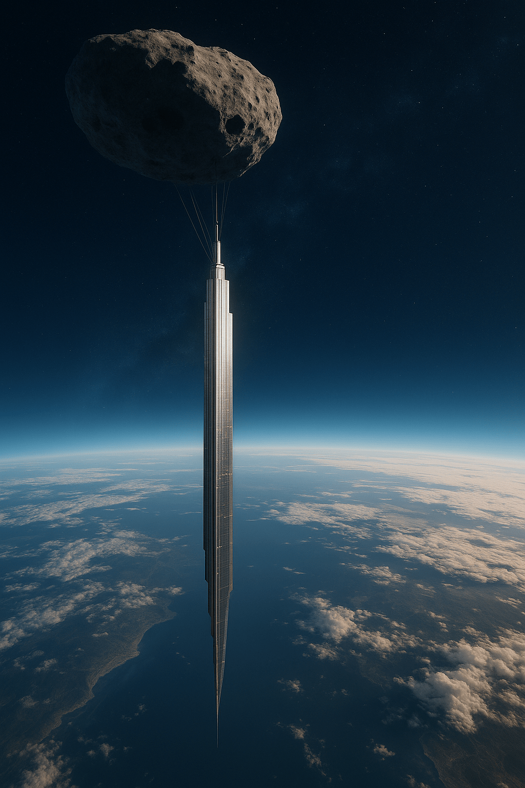 La Torre Analemma, propuesta por Clouds Architecture Office, es un concepto radical que imagina un rascacielos suspendido desde un asteroide en órbita a 50,000 kilómetros sobre el planeta.